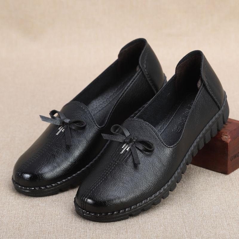 Non-slip Soft Mother Shoes Slip-on Casual Women's Shoes Soft Leather Soft Bottom Non-slip Leather Shoes Single Shoes
