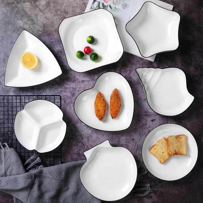 Nordic Style Plate Dish Plate Household Ceramic Dish Plate Creative Fruit Plate Square Dessert Plate Heart-shaped Plate