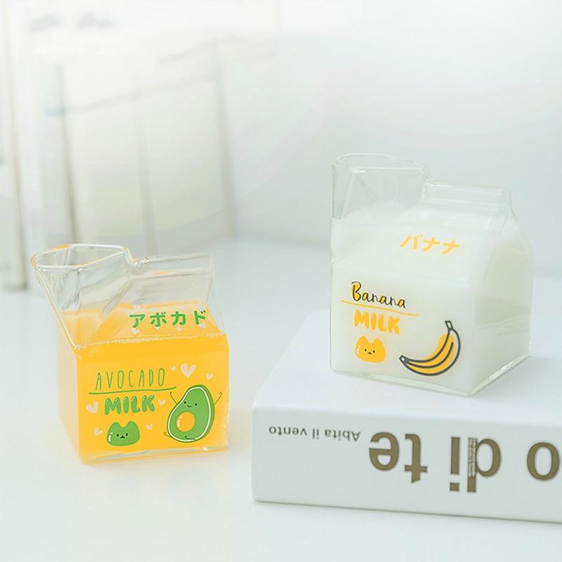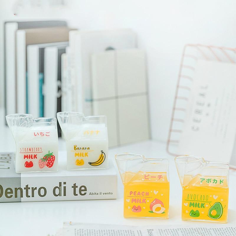 Novelty Half Pint Creamer Milk Cute Carton Glass Cup Coffee Glass Juice Cup Unique Design Pure Handmade Crafts