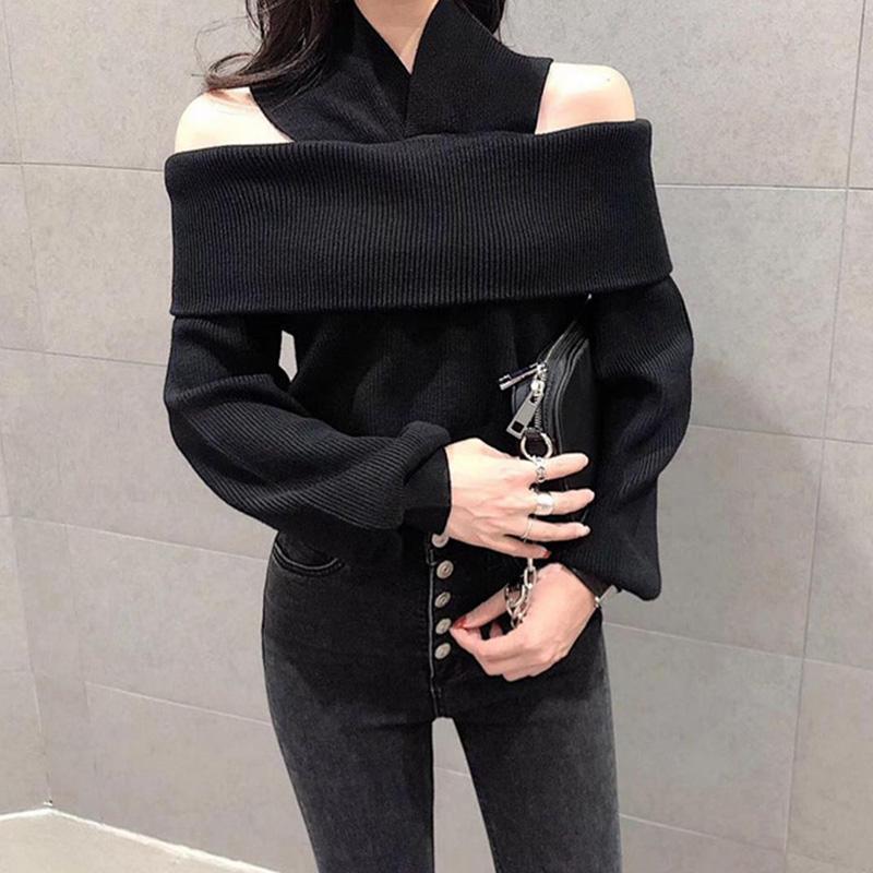 Off Shoulder Sexy One-neck Blouse Loose Knit Bottoming Shirt Fashion Outer Wear Spring and Autumn Jacket