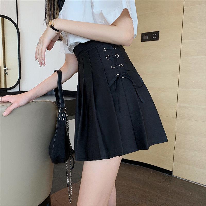Pleated Skirt Women's Spring Summer All-match Strappy Short Skirt Korean Version of The College Style Skirt with Lining High Waist A-line Skirt