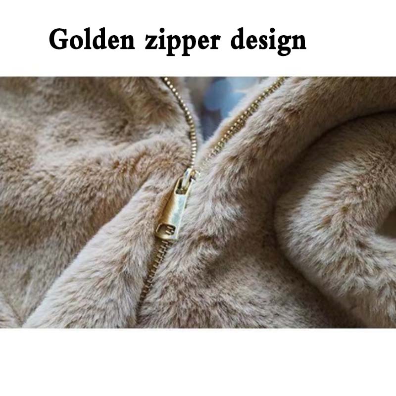 Plus Velvet Padded Faux Rabbit Fur Hooded Mid-length Loose Long-sleeved Jacket Women