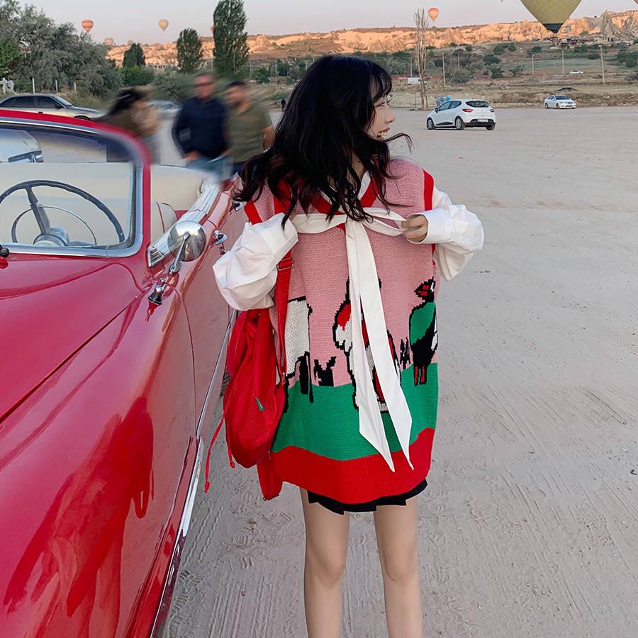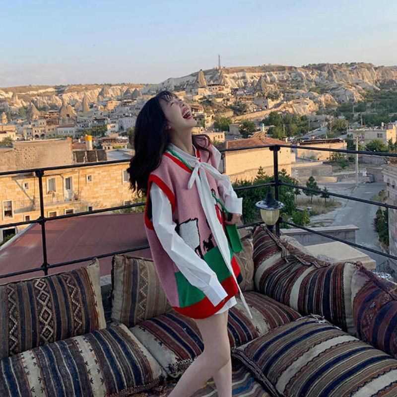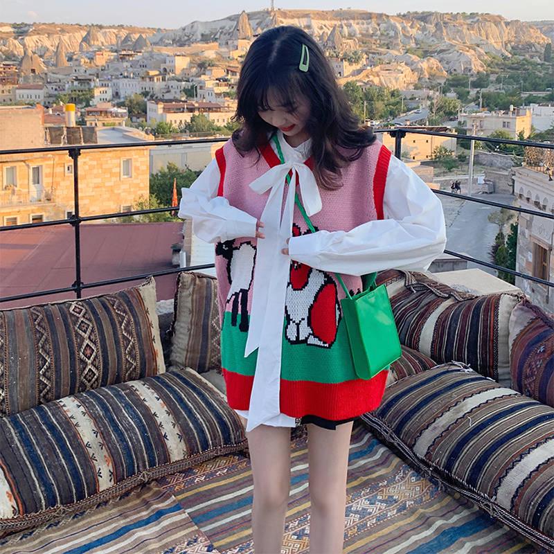 Pofulove Autumn Winter Sweater Sleeveless Pullover Sweater Vest Coat Loose V-neck Vest Women