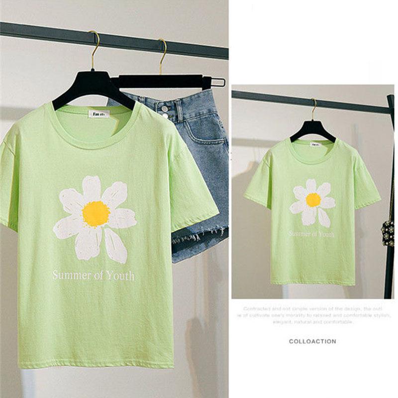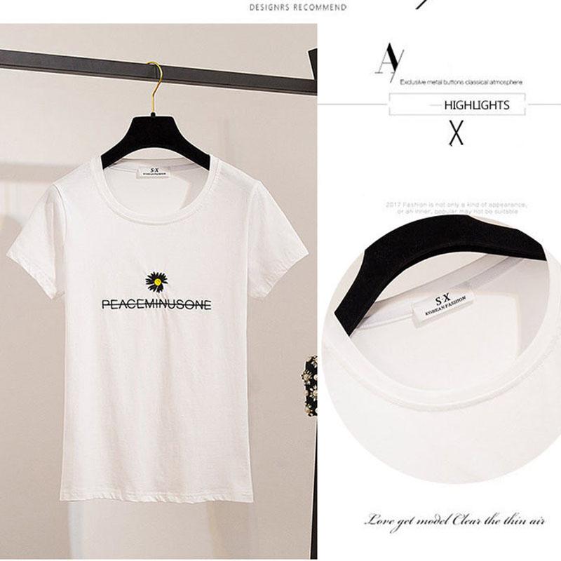 Pofulove Women Shorts Set Summer Embroidered Shirt Short Sleeve T-shirt High WaistRipped Denim Shorts 2 Piece Set for Teen Girl