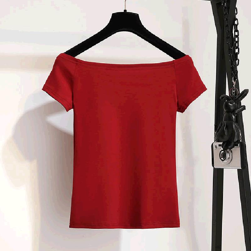 Pofulove Women Summer T Shirt Set Off Shoulder T-shirt High Waist Polka Dot Skirt 2piece Sets