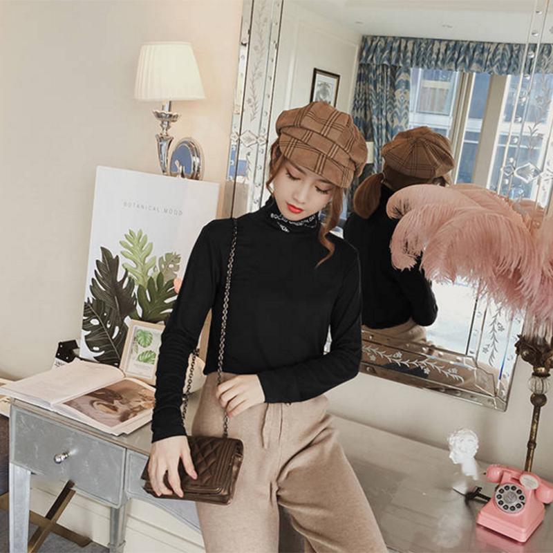 Pofulove Women's Turtleneck Thick Sweater Winter Plus Velvet Turtleneck Long-sleeved Wild Shirt