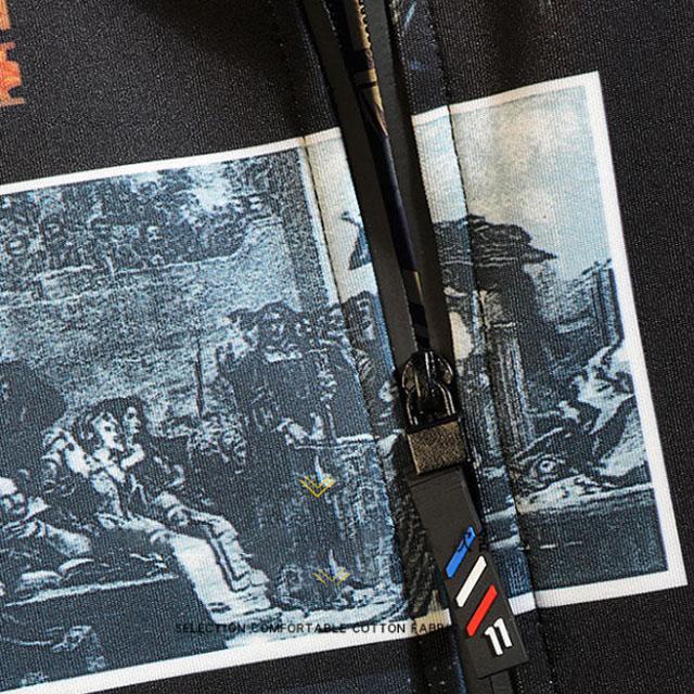 Retro Print Windbreaker Spring Hooded Top Men Casual Loose Coat Soft Comfortable Jacket Long