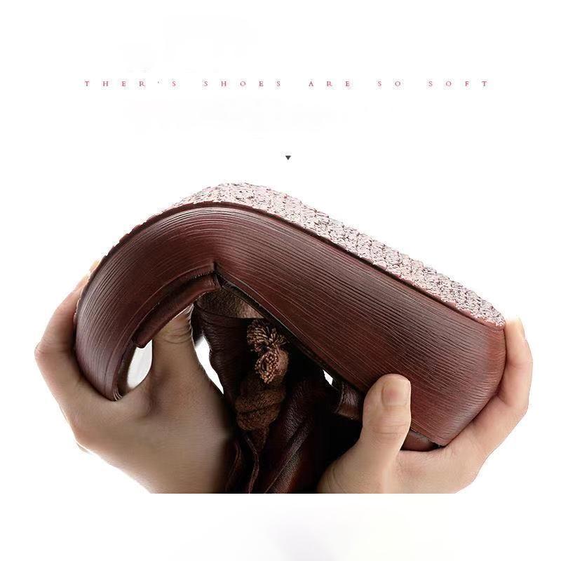 Roman Shoes Women Casual High-top Increased Slope Heel Sandals Soft Leather Thick-soled Fish Mouth Sandals Can Be Worn Outdoors