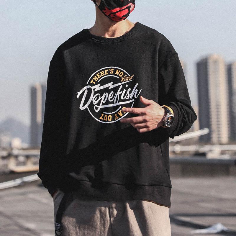 Round Neck Sweater Men's Hoodless Autumn and Winter Tops Ins Tide Brand Loose Large Size Trend All-match Jacket To Keep Warm and Comfortable