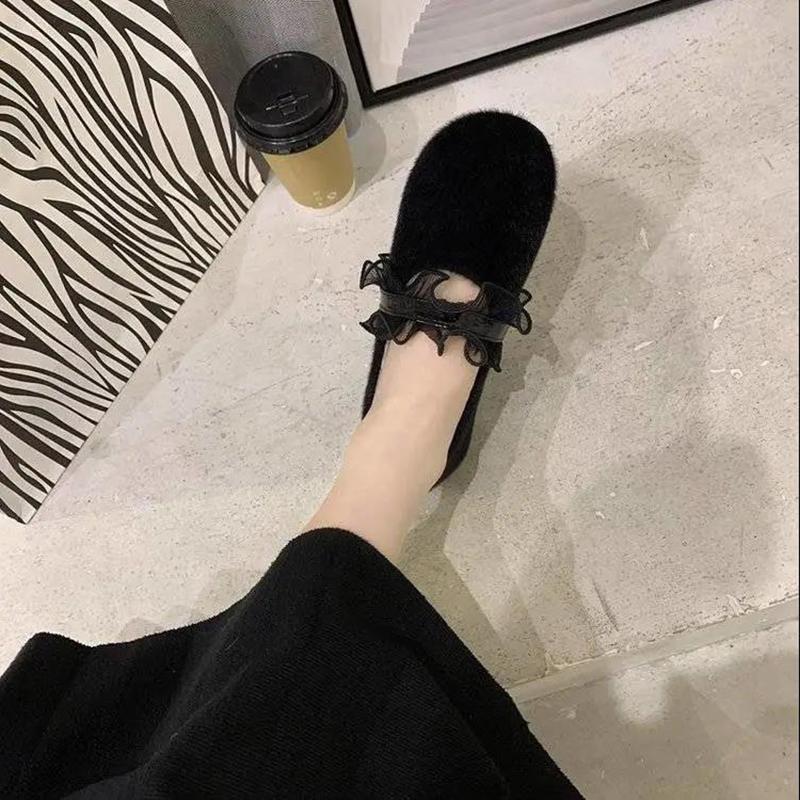 Round Toe All-match Shallow Mouth Peas Shoes Flat Fur Shoes Soft Sole Single Shoes Women's Pedal Lazy Shoes Ladies Moccasin Shoes