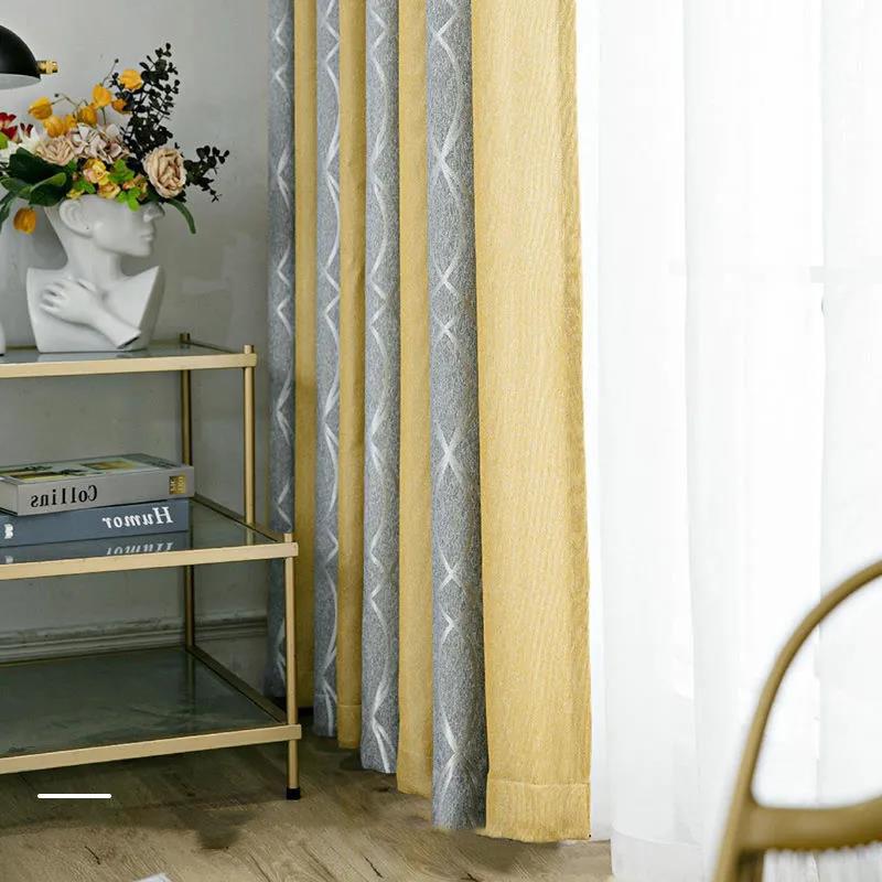 Seamless Stitching Nordic Modern Minimalist Net Red Curtains Living Room Bedroom Balcony Floor-to-ceiling Windows Bay Window Curtains (170×270cm)