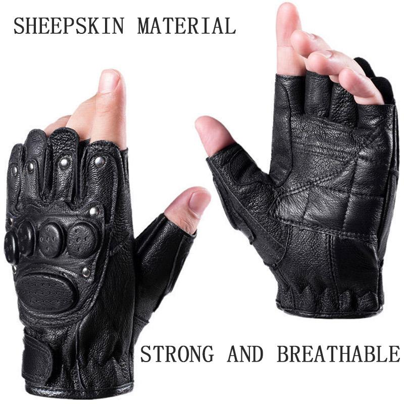 Sheepskin Half-finger Gloves Men's Four Seasons Riding and Driving Motorcycle Outdoor Tactical Training Non-slip Leather Gloves