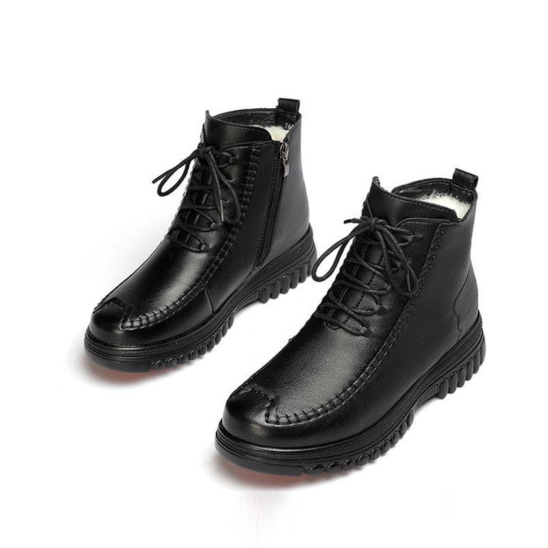 Short Boots Plus Velvet Winter Flat Non-slip Soft Leather Cotton Shoes Martin Boots Warm Sports Shoes Leather Shoes Waterproof