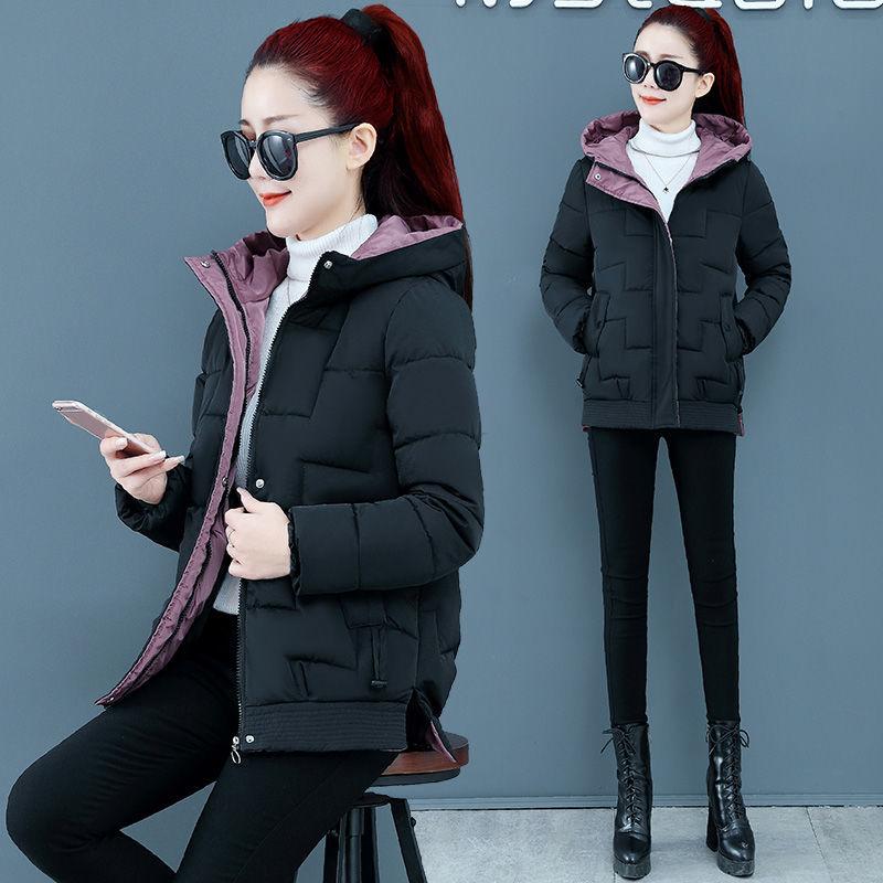 Short Hooded Down Padded Jacket Winter Women's Padded Jacket Cotton-padded Jacket Loose and Thick Warm Jacket Wild and Simple