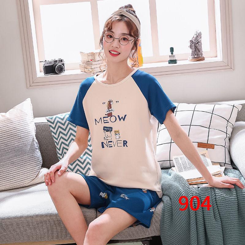 Short-sleeved Pajamas Women Summer Casual Cotton Cute Ladies Large Size Home Service Two-piece Suit