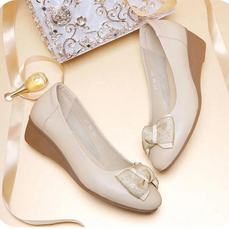 Single Shoes Women's Casual Middle-aged and Elderly Shoes Women's Non-slip Wedge Heel Comfortable Spring and Autumn Shallow Mouth Flat Work Shoes