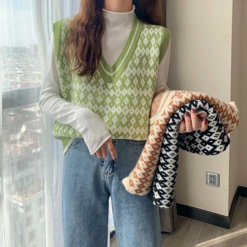 Sleeveless Vest Sweater Loose V-neck Sweater Outer Wear Women's Thin Sleeveless Sweater Retro British College Style Vest Sweater