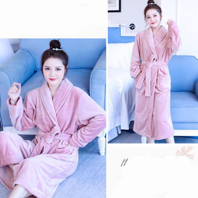 Solid Color Ladies Home Clothes Cashmere Warmth Pajamas Quick-drying Bathrobe Winter Homewear Robe Coat Long