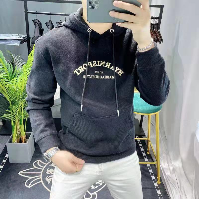 Spring and Autumn European Trend Hooded Sweater Men's Embroidery Letter Hooded Top