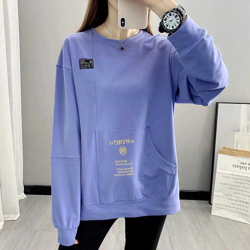 Spring and Summer Large Size Loose Pocket Sweater Women's Bottoming Casual Long-sleeved T-shirt Top