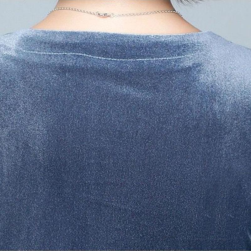 Spring Fall Women Sexy V-neck Gold Velvet top Elegant Blue Long Sleeve Wild Basic Shirts Vintage Casual Ladies Top Pullover