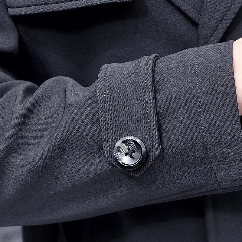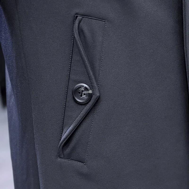 Spring Long Over Knee Windbreaker Men Slim Jacket V-neck Casual Coat Trend Parka for Youth