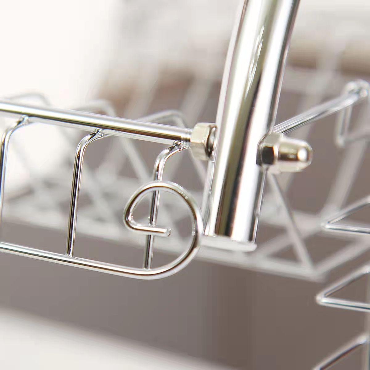 Steel 2 Tier Dish Drying Cutlery Stainless Drainer Drain Silver Tray Rack MH5R