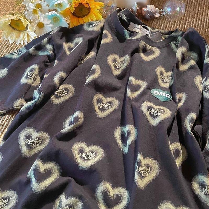 Street Style Tie-dye Love Loose Short-sleeved Women's Harajuku Style Couple Half-sleeve Top