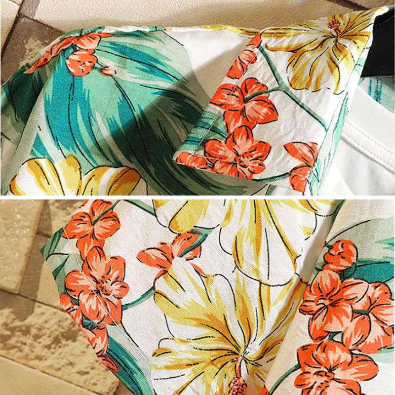 Summer Beach Shirt Men Tees Half Sleeve Clothes Leaf Fruit Print T-shirt Button Up Top Casual Male Undies Plus Size Overshirt