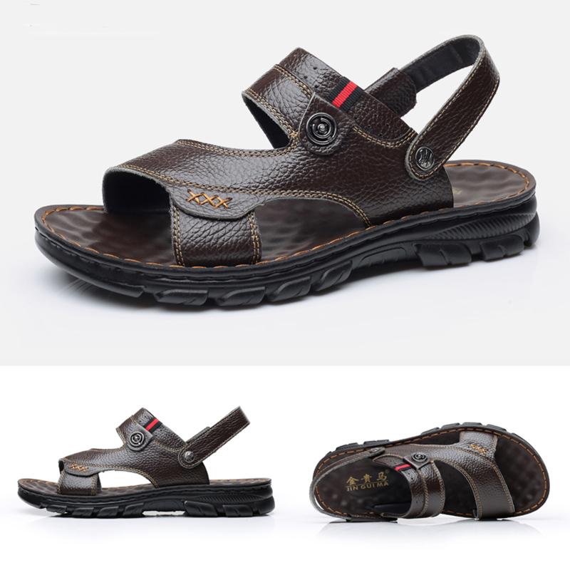Summer Breathable Cowhide Beach Shoes Soft Sole Casual Wear Men's Sandals Leather Dual-use Sandals Slippers