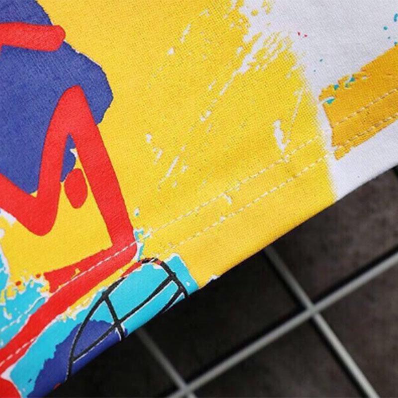 Summer Men's Ice Silk Short-sleeved Breathable T-shirt Round Neck Trend Student Loose Printing Casual Suit
