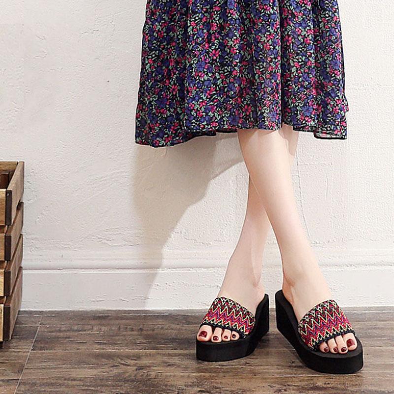 Summer One Word Slippers Girls Wear Fashion Wedge Heel Beach Shoes Non-slip Sandals