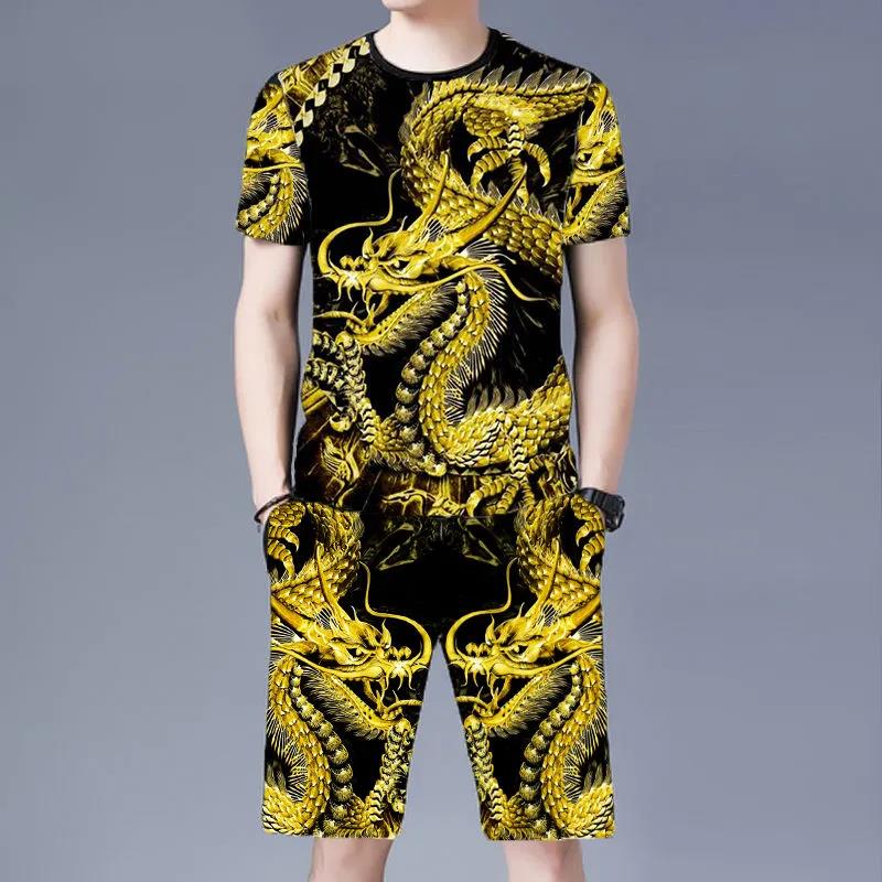 Summer Plus Size Men's Short-sleeved T-shirt Shorts Suit Sports and Leisure Two-piece Suit Plus Fat Plus Men's Suit