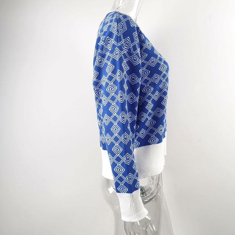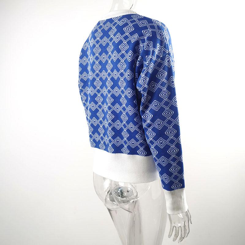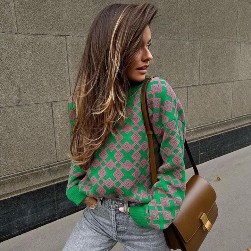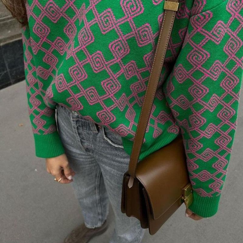 Sweater Women Round Neck Geometric Pattern Korean Style Fluffy Top Loose Trendy Harajuku Cashmere Sweater Autumn Winter Jumper
