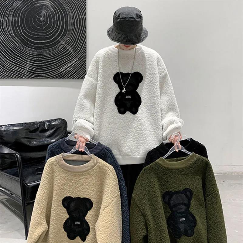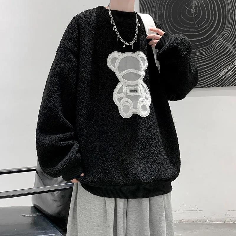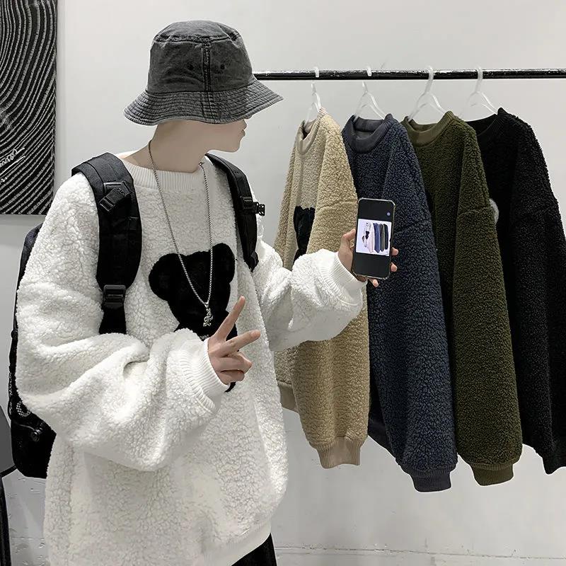 Sweatshirt Men's Autumn and Winter Round Neck Jacket Men's Loose Plus Velvet Padded Top