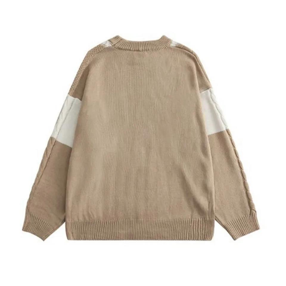 The New Japanese Autumn and Winter Retro College Style Bear Color Matching Sweater for Men and Women Students Couples Knit Sweater Jacket Men