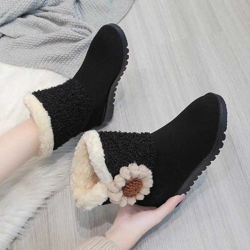 Thickened Snow Boots Women's Short Boots Winter Plus Velvet Flat-bottomed Warm Cotton Shoes Thick-soled Women's Shoes