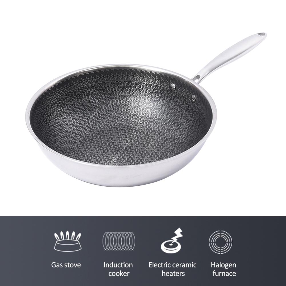 Three - Layer Stainless Steel Wok No Oil Smoke Non - Stick Pan Flat Bottom Home Cooking Pot Gas