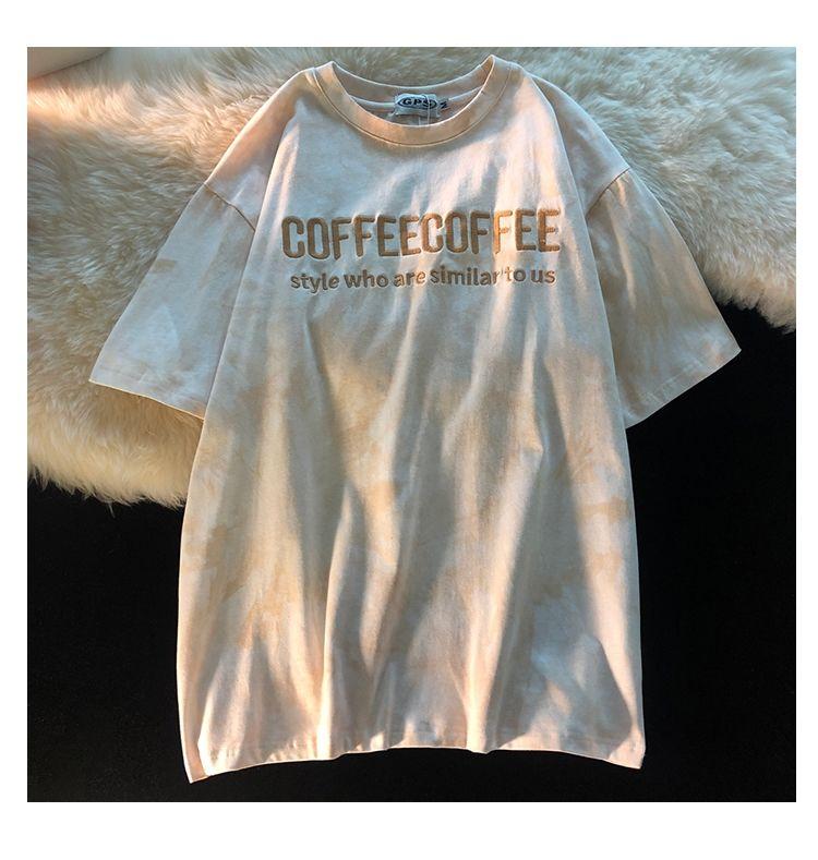 Tie-dye Gradient Embroidery Short-sleeved T-shirt Men Pink Wild Small Fresh Retro Half-sleeved Tide