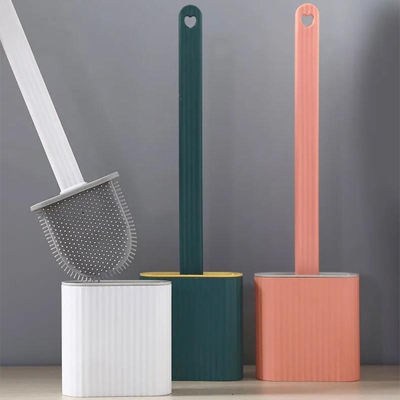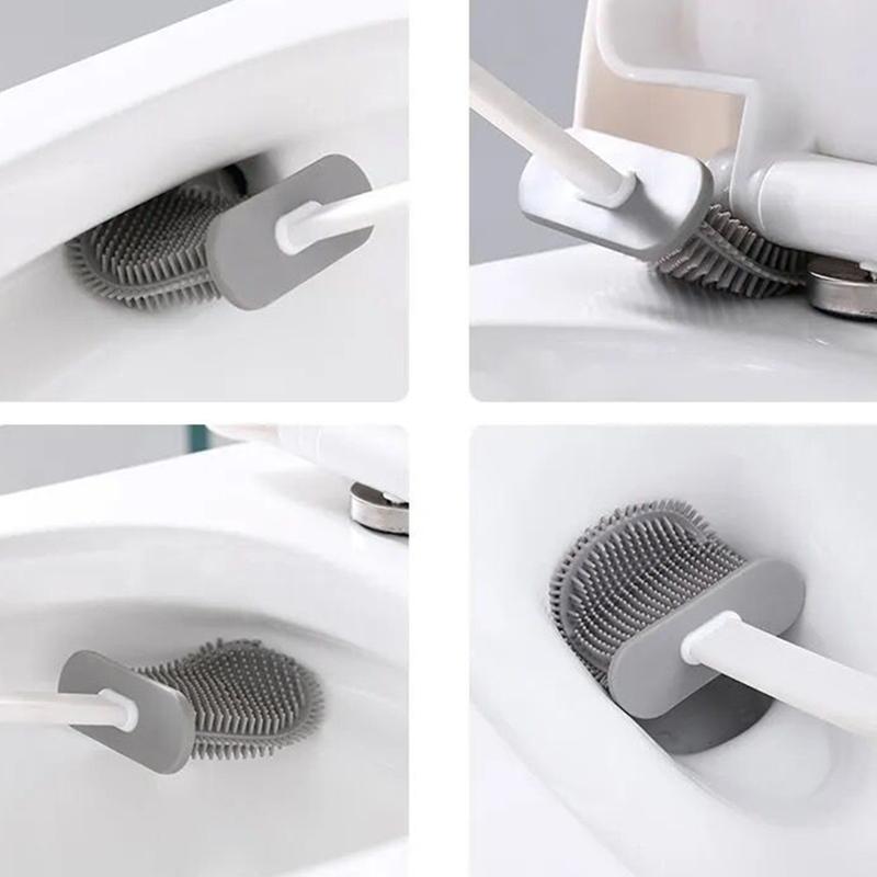 Toilet Brush Set No Dead Ends Wall-mounted Household Free Punch Wall-mounted Racks Creative Silicone Toilet Brush