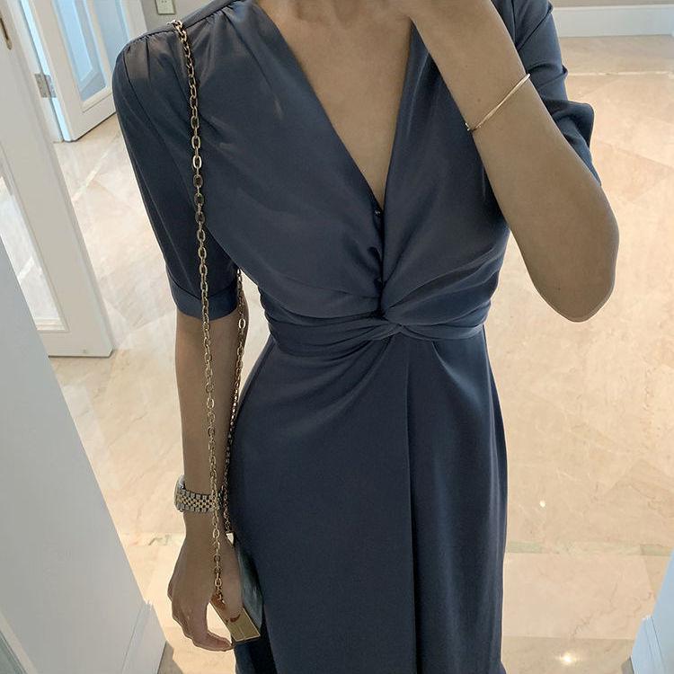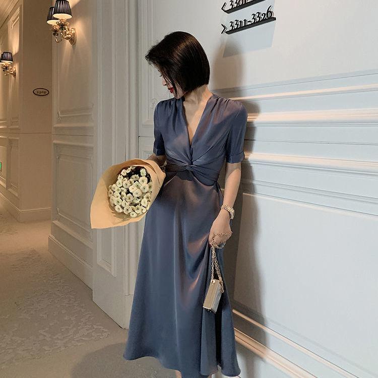 Vintage Satin Slip Midi Dress, Summer Spring Wedding Guest Dress, Prom Formal Dress, Graduation Dress, Elegant French Cute Milkmaid Dress
