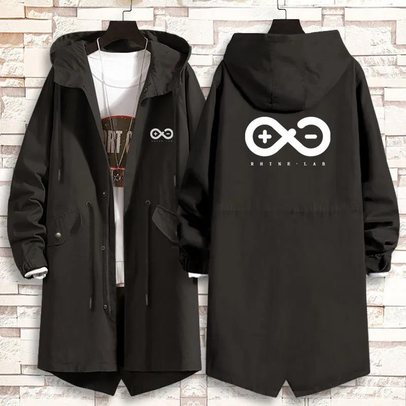 W Print Men Windbreaker Spring Hooded Coat Casual Loose Top Soft Comfortable Jacket Long