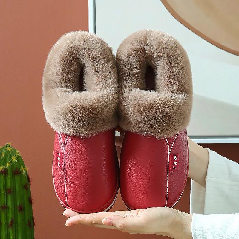 Warm and Velvet Thick-soled Cotton Shoes for Lovers Leather Waterproof Non-slip Bag Heel Shoes for Winter
