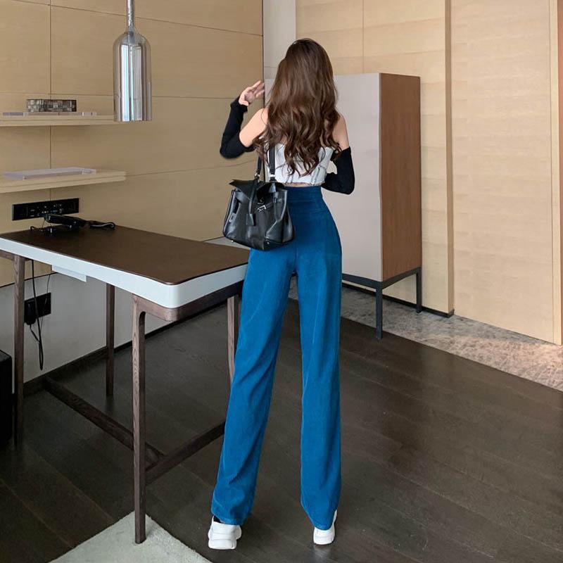 Wickn Velvet Pants Children Autumn and Winter Plus Velvet Small Monk Stickers High Waist Wide Leg Pants Loose Straight Tow Mop Pants
