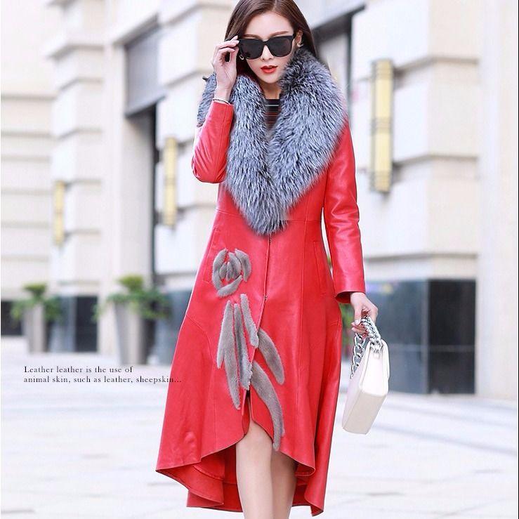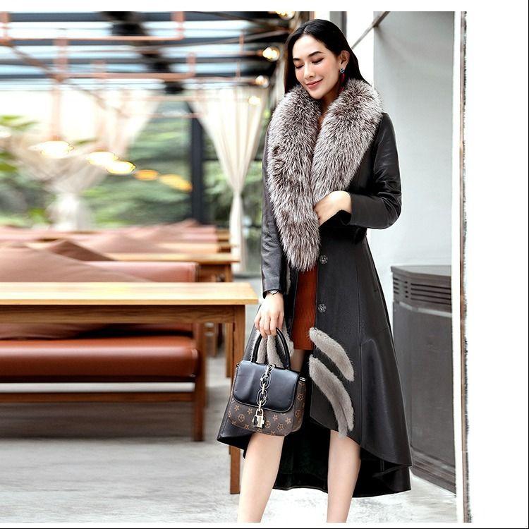 Winter Fur Collar Women's Fur Coat Plush Thickening Medium Length Women's Leather Coat Slim Closing Woman Parka Coat