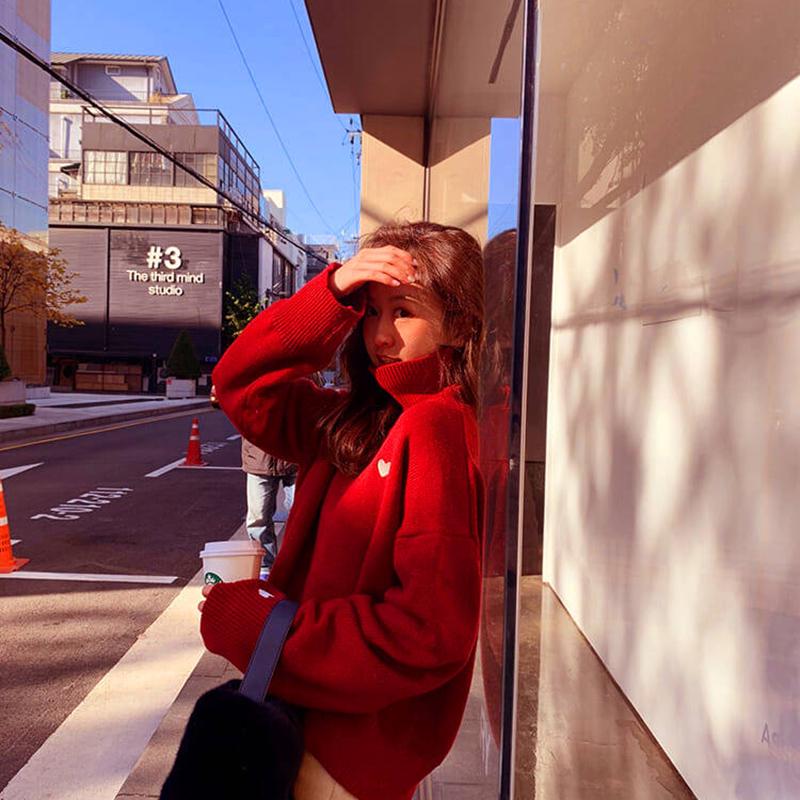Winter High-neck Long-sleeved Love Warm Sweater Women Loose Lazy Knitted Pullover Sweater