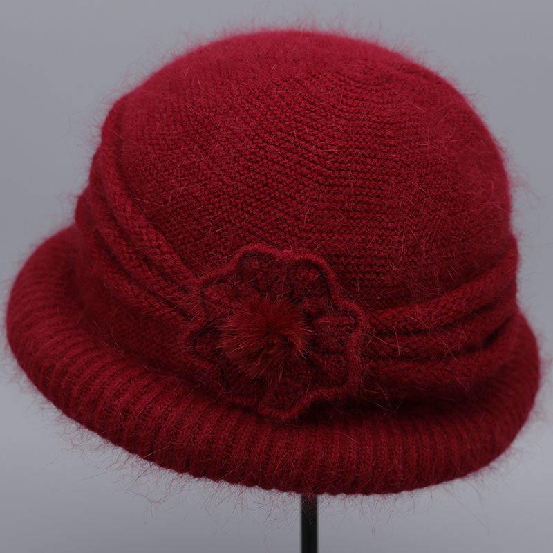 Winter Mother's Woolen Hat Plus Velvet Thick Knitted Grandma Hat Female Middle-aged and Elderly Rabbit Fur Old Lady Warm Hat