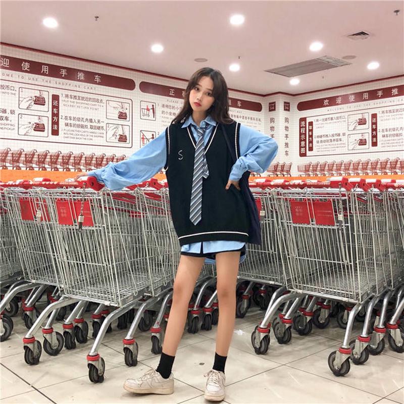 Winter Retro Gray Sweater Vest Women Student Wear Inside Out Thick Warm Knit Vest Top