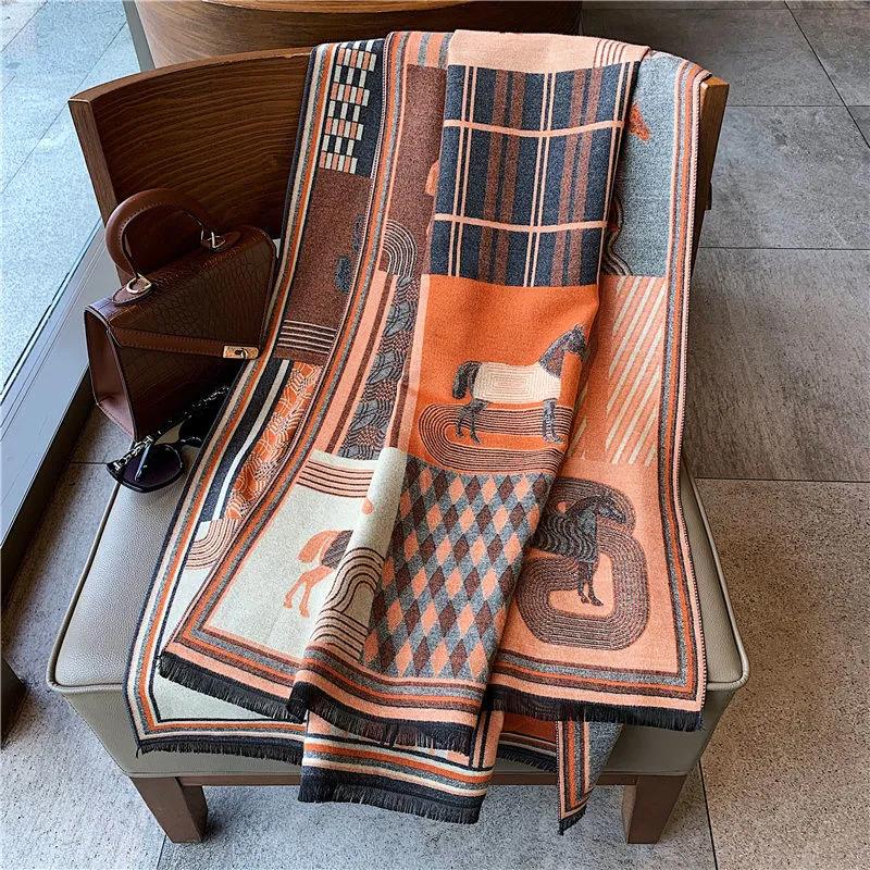 Winter Women's Cashmere Scarf Double-sided Printing Oversized Shawl Lengthened Thick Scarf Shawl