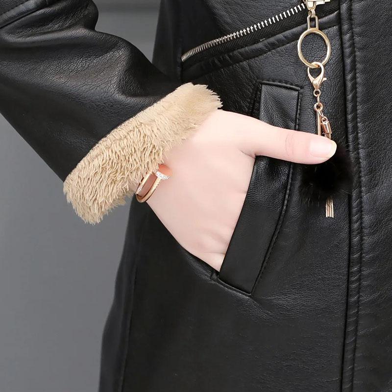 Winter Women's Leather Fashion Fur Coat Lamb Fur Coat Plus Velvet Thickening Medium Long Large Size Leather Coat